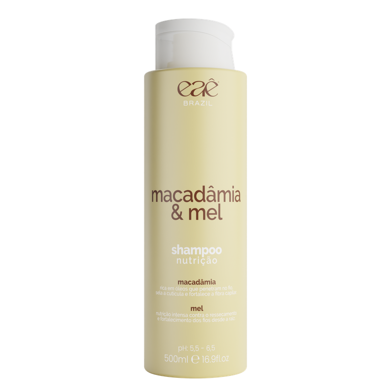 Limpa delicadamente enquanto nutre e restaura os fios. A macadâmia, rica em óleos que penetram profundamente, sela a cutícula e fortalece a fibra, enquanto o mel combate o ressecamento, promovendo brilho e maciez.